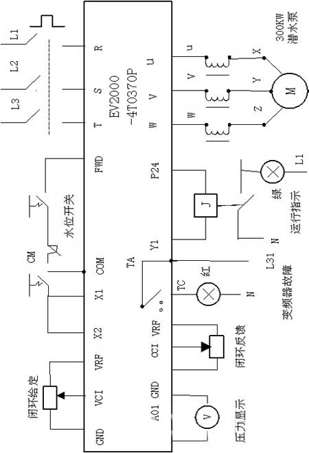1.选用艾默生EV2000-4T0370P型变频器拖动30KW潜水泵。