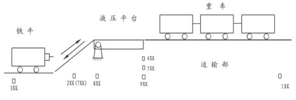 具体描述:由于系统采用自动控制,所以铁牛和重车的运行状态和位置需要识别,回槽限位开关(7XK)、铁牛的位置开关(8XK)、重车的到位置开关(9XK),限位开关的功能如下: