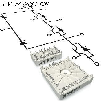 600V的IGBT反向阻断电压下,额定电流为20-150A。在电源应用中,模块运行时的输入功率在5-80kVA。用于三电平逆变器的IGBT有两种封装:SEMITOP® 3(55x31mm2),用于额定电流为20-50A的模块和SEMITOP® 4(60x55mm2),用于额定电流为75-150A的模块。