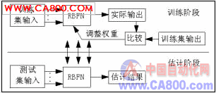 RBF神经网络的实质是:用神经网络对数据进行函数逼近或者数据拟合问题,在过程变量与Cr含量之间建立映射关系,从而实现对Cr含量的估计。该网络包括两个阶段:训练阶段和估计预测阶段。如图2所示。