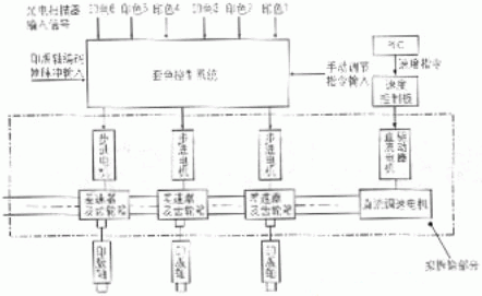 实际上,印刷机的同步控制包括两方面的内容,一方面是各印版轴转速的同步,另一方面是印刷套印同步控制,即通过光电扫描器检测印刷码刻线的实际位置,并与理论位置进行比较,输出脉冲信号(正转或反转)给执行机构(改造前是步进电机)进行位置调整,它构成了同步控制的外环。