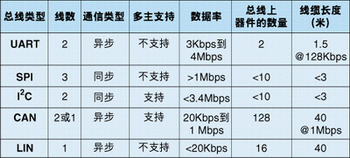 微处理器中常用的集成串行总线是通用异步接收器传输总线、串行通信接口、同步外设接口(SPI)、内部集成电路(I2C)和通用串行总线,以及车用串行总线,包括控制器区域网(CAN)和本地互连网(LIN)。这些总线在速度、物理接口要求和通信方法学上都有所不同。本文将对嵌入式系统设计的串行总线、驱动器和物理接口这些要求提供一个总体介绍,为选择最优总线提供指导并给出一个比较图表(表1)。为了说明方便起见,本文的阐述是基于微处理器的设计。