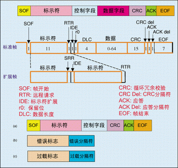 错误帧:此帧将任何总线错误通知其它单元,在接收到这个帧时发送器会自动进行消息重发。