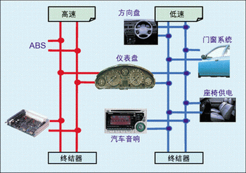 图3的例子显示了CAN网络是如何通过富士通的16位CAN微控制器在汽车中应用。
