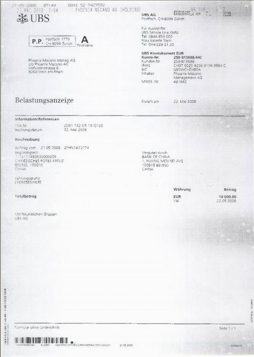 5月22日,美卡诺德国总部又向中国红十字总会捐献了1万欧元,支持中国人民的抗灾和重建工作。
