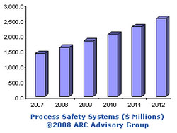 July 21, 2008 -- The strong growth of the Safety Instrumented Systems (SIS) market will continue in 2008. However, due to the downturn of the economy in North America the growth rate will be somewhat tempered in subsequent years. The worldwide market, which is around $1.4 billion in 2007, is expected to grow at a compounded annual growth rate (CAGR) of over 12% per year to over $2.5 billion in 2012, according to a new ARC Advisory Group study, “Process Safety System Worldwide Outlook – Market Analysis and Forecast Through 2012.““The safety system market has experienced unprecedented growth for the last two years. Increased demand for oil and gas due to the economic growth of China and India along with the high price of crude oil is fueling investments in oil and gas production and in refining, leading to increased demand for safety systems,” according to ARC Vice President Asish Ghosh, the principal author of the study.