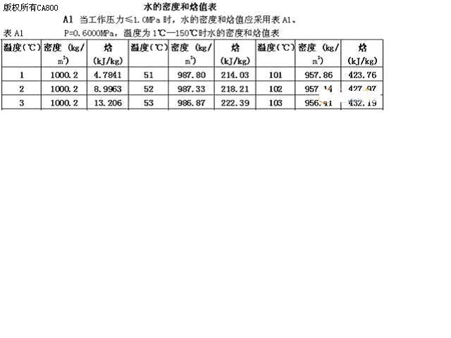其中水的密度和焓值通过查国家标准(如图5所示)可以确定。当温度为非整数时,应进行插值修正;当表的结构确定以后,通过实验就可得出水的体积流量。
