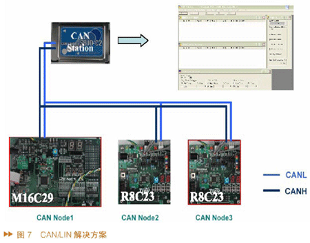 图7所示的是CAN/LIN解决方案,共有3个CAN节点。