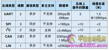 微处理器中常用的集成串行总线是通用异步接收器传输总线、串行通信接口、同步外设接口(SPI)、内部集成电路(I2C)和通用串行总线,以及车用串行总线,包括控制器区域网(CAN)和本地互连网(LIN)。这些总线在速度、物理接口要求和通信方法学上都有所不同。本文将对嵌入式系统设计的串行总线、驱动器和物理接口这些要求提供一个总体介绍,为选择最优总线提供指导并给出一个比较图表(表1)。为了说明方便起见,本文的阐述是基于微处理器的设计。
