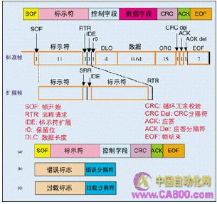错误帧:此帧将任何总线错误通知其它单元,在接收到这个帧时发送器会自动进行消息重发。