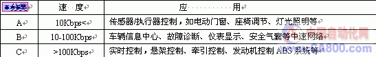 表一 汽车网络分类
