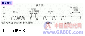 LIN总线中数据借助报文帧来传输,报文帧由报文头和响应组成。