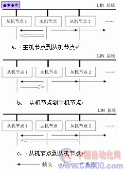 LIN总线上的所有通讯都由主机节点中的主机任务发起,主机任务根据进度表来确定当前的通讯内容,发送相应的帧头,并为报文帧分配帧通道。总线上的从机节点接收