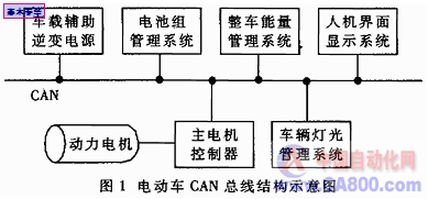 德国Bosch公司为了解决现代车辆中众多的控制和数据交换问题,开发出一种CAN(Controller Area Network)现场总线通讯结构,广泛应用在常规燃油汽车上,如BENZ、BMW、PORSCHE。同时,CAN总线也被认为是电动车最佳通讯结构,我国“863计划”关于电动汽车的说明中已经明确提出,新申报的电动车开发项目必须采用CAN总线通讯模式。