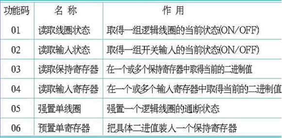 Modbus的Slave端是根据Master端发送过来的功能码进行相应的动作的。表3是Modbus RTU协议常用的功能码,使用它们即可实现对Slave端的数字量和模拟量进行读写操作。