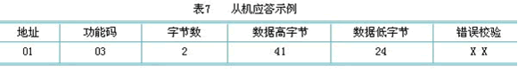 表6给出了以RTU方式读取一个整数数据的例子:主机请求。