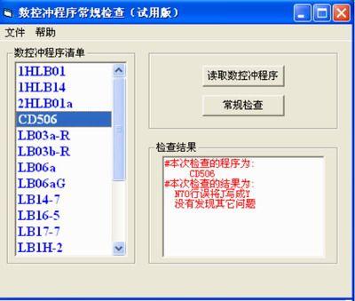 类似以上的问题,能否不需要人工就能检查出来呢。笔者同样通过VB编写了一款数控冲程序常规检查的小软件,图4是小软件的工作界面,其使用效果同样不错。