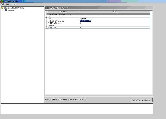 在桌面或者开始菜单中打开NetLinkOPC Editor;鼠标右击左侧BEICHEN NETLINK OPC列表,新建连接“New connetion”;选中新的连接,修改相关参数(站点名称、IP地址和PLC地址),如下图: