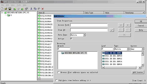 将OPC服务器(Server)中的变量导入,如下图: