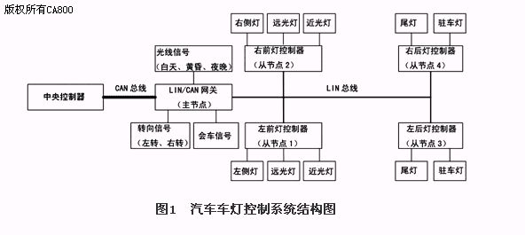 为了实现这一车灯控制策略,本设计采用如图1所示的汽车车灯控制系统网络拓扑结构。