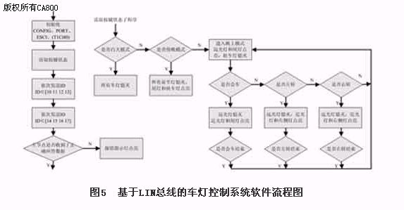 Freescale半导体公司的LIN开发平台(LIN DEMO)系统提供了完整的软件和硬件,用户可以在此平台上很快的搭建起LIN控制网络。其中,软件部分包括了标准的LIN底层驱动软件。本设计正是利用了Freescale LIN API中的标准LIN底层驱动,在MC68HC908GZ60芯片上实现了车灯控制系统的开发。