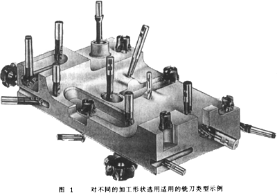 图2是一些选用铣刀类型。只要尺寸允许,不管是哪种形状的刀具,切削刃宜采用机夹可转位铣刀片。这样的刀具由于刀片和刀体可以进行多种组合,且刀片和刀体可以在不同公司进行生产,所以可形成大规模专业化生产,既有利于提高刀具的质量,又有利于降低刀具的生产成本。