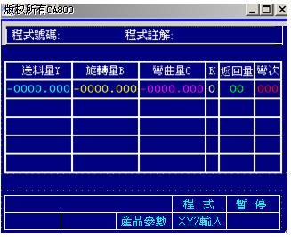 操作者看到的程序是非常简单的程序。干涉处理和程序运算都是操作者看不到的也是无法修改的。整个程序的架构分主程序,前置程序,后置程序以及子程序等,各子程序可以用来处理不同的送料以及弯管方式,调用也非常方便。