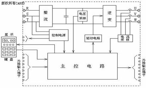 变频器是利用电力半导体器件的通断作用将工频电源变换为另一频率的电能控制装置。低压变频器主要采用交—直—交方式,先把工频交流电源通过整流器转换成直流电源,然后再把直流电源转换成频率、电压均可控制的交流电源以供给电动机。变频器的电路一般由整流、中间直流环节、逆变和控制4个部分组成。整流部分为三相桥式不可控整流器,逆变部分为IGBT三相桥式逆变器,且输出为PWM波形,中间直流环节为滤波、直流储能和缓冲无功功率。通过变频器可以自由调节电机的速度。如图1为变频器内的控制电路框图。