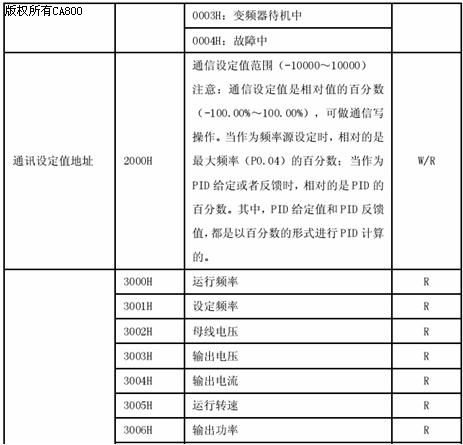 按照某品牌变频器的通讯说明,通用的变频器的功能码如下: