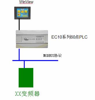 变频器采用某品牌的通用型变频器,PLC通过MODBUS协议进行通讯。