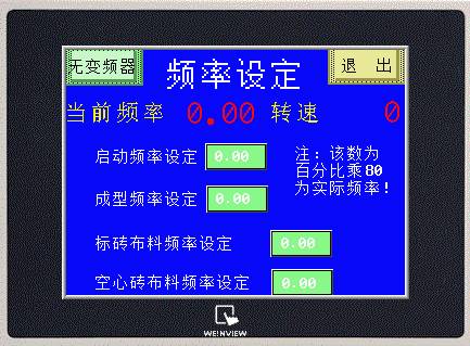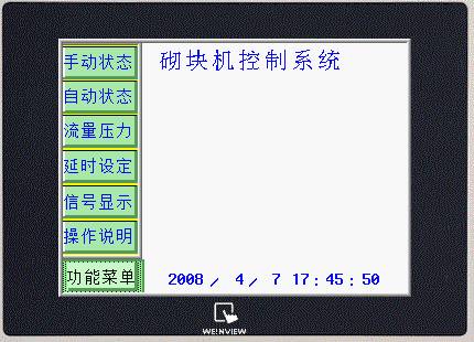 可以在触摸屏上对砌块成型机的手动、自动状态、流量压力、延时进行设置,也可以显示当前的信号状态。