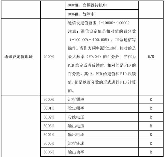 按照某品牌变频器的通讯说明,通用的变频器的功能码如下: