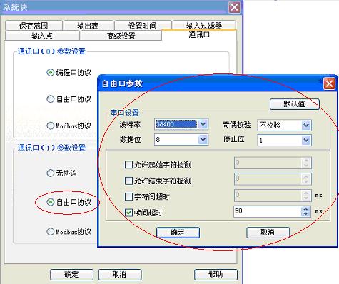 2、EC20控制器通过COM0端口与人机界面通讯,人机界面作为主站,通过EMERSON PROTOCOL 协议与可编程通讯,控制器为从站,通过MODBUS协议通讯。通过COM1端口与变频器通讯,可编程控制器此时作为主站,变频器为从站,采用的是自由口通讯协议。