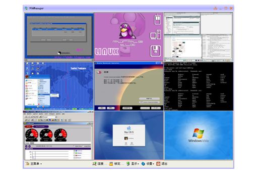 实时监控模块为软件,运行在Windows2000/XP/2003平台之上,通过该软件可以多画面的形式(1/4/9画面)观看前端VGA编码器采集的VGA信号,该模块通常提供给机房管理人员使用。管理人员通过该软件,即可观看到机房内任何一个KVM操作台所显示的人机界面,不用到现场,即可实时观看到机房内操作人员的所进行的任何操作,并且通过该软件可以对VGA编码器的参数进行修改设置。