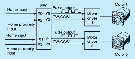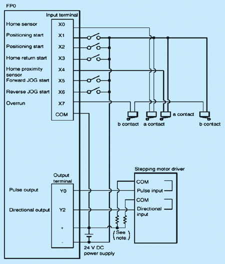 FP0系列PLC除具有一般逻辑控制与运算功能外,还具有高速计数输入(最大10kHz)、PLS脉冲直接输出、SPD位置控制、PWM脉冲输出等特殊处理功能,用于步进电机的速度控制或位置按制十分方便。