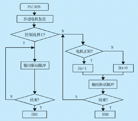 在图3所示系统中:PLC输出口Y0、Y1以脉冲速率方式输入步进电机驱动器的Pulse input端,控制梳理机主电机和毛斗电机转速和位移。PLC输出口Y2、Y3以方向信号输入到驱动器Directional input端,控制梳理机电机的转向。输出点Y4、Y5是步进电机复位信号RST,每次开机对步进电机驱动器清零。PLC输入点X0以梳理机喂入量斗处的红外传感器作为输入信号,可调节喂入量斗的喂毛量。X1、X2作为步进电机的启动信号,X3作为步进电机复位信号。X4以为位置传感器作为输入信号,检测梳理机是否复位。可以利用当需要手动操作时,可通过PLC的手动输入信号X5、X6,以点动方式按制电机的正转或反转。控制关系为:X5=ON,电机正转;X6=ON,电机反转。