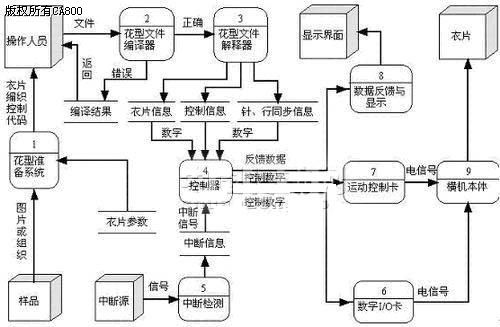 伺服在全自动电脑横机市场发展空间分析 中国的针织行业有世界工厂之称,在这个巨大的工厂中保守估计,有电脑横机4万余台,电动横机12万余台,而手摇横机的数量在百万台之上。近三年,中国年均进口电脑横机仍保持4000台~5000台。从这些数字上可以明显的看出全自动电脑横机的市场潜力非常巨大。 在国内有5万多家从事羊毛衫生产的加工厂,从这个数字来看,平均每家工厂拥有的电脑横机不足1台。而拥有电脑横机最多的加工工厂有近1500台电脑横机。从这几个数字上,我们可以看出,现在电脑横机的普及程度并不高,有很多的羊毛衫加工厂还没有使用电脑横机,而现在从手摇横机向电脑横机发展的大潮已经来临,在这种趋势下,电脑横机的市场空间被大大的扩张。在市场需求的推动下,将会有更多的工厂开始使用全自动电脑横机。 从国际市场的需求上来看,在人民币不断升值、贸易壁垒越来越多的大环境下,想要通过廉价劳动力来进行低附加值加工,从而获取利润已经是举步唯艰,只有从产品质量上提高竞争力,才是获得利润的真正渠道。电脑横机可以做到比手摇横机很难才能达到的工艺水平。所以,通过电脑横机可以生产更高附加值的毛衫,使厂家获得更大利润。 综上所述,我们可以明确判断,电脑横机的市场空间巨大,在国内市场中对于电脑横机的需求将会越来越大。目前国内电脑横机行业里单(双)系统都是配套两套交流伺服,主伺服用于机头驱动系统,摇床伺服用于针床移位系统。随着电脑横机市场需求越来越大,伺服做为一个主要精密传动配套部件将会迎来一个广阔的巨大的市场空间。 全自动电脑横机控制系统解决方案流程图 一、软件数据流图: ![]() 图1 软件数据流图 从图1电脑横机控制数据流程图中我们可以清楚地看到数据在电脑横机加工过程中的流向。下面对数据流程图做些说明: 1、花型准备系统根据衣片样品所需的组织或者图案,按照衣片参数,比如编织密度,衣片宽度,衣片长度,编织速度,编织系统等等,生成衣片编织控制代码。 2、花型文件编译器对操作人员输入的花型文件进行编译,如果输入有误或者不符合花型文件定义语法,显示编译结果,并且返回。 3、花型文件解释器是对经过编译的文件进行解释,把它转化成直接可以用于控制的数据,并把这些数据按照一定的数据结构进行存储、管理。 4、控制器取出经过第三步骤处理获得的数据控制运动控制卡和数字I/O卡。 5、中断检测是对中断源做一定周期的检测,如果监测到有信号,马上产生一个中断信号,通知主程序处理中断。 6、数字I/O卡用获得的弱电信号控制强电信号,直接控制电脑横机本体。 7、运动控制卡通过运动通道用获得的弱电信号控制强电信号,直接控制电脑横机本体。 8、数据反馈与显示把衣片信息,加工信息通过操作界面反馈给操作人员。 9、横机本体在受控状态下编织衣片。 二、硬件结构图: