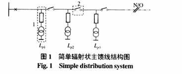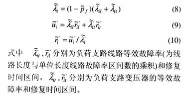 时相当简单且正确(因为上述简化是基于实际配电系统接线和运行的特点的)。有了分支馈线的等效参数后,就能够很容易用向上和向下等效的思想来求得负荷及系统的可靠性区间指标。