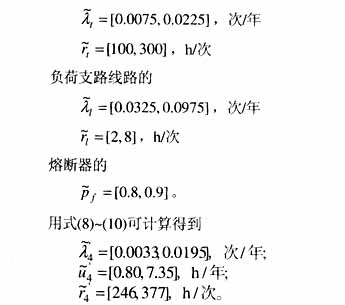 (2)用本文的公式计算负荷支路和分支馈线的等效可靠性参数。注意为了避免区间运算的阶数,在计算过程中每次只进行2个区间数间的运算。