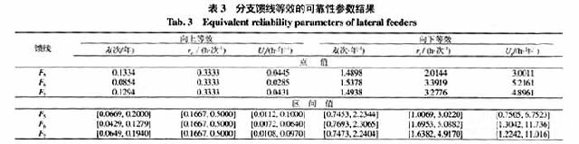 2)可靠性区间评估:根据评估步骤对主馈线F4上的3条分支馈线进行网络等值,所得的区间结果如表3所示。表中点值和区间值分别为用与不用区间评估得到的结果。