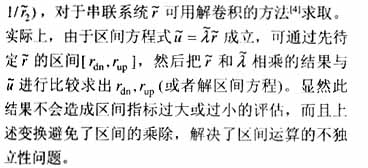 由于区间除法运算存在“不独立性”问题,若直接用上面公式来计算可靠性区间指标,可能会产生过大或过小的结果,为避免这个问题,必须对上式进行变换,对并联系统![]()