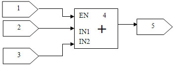 模块1为变量模块(输入输出模块)中的常量模块,模块2、3都为变量模块(输入输出模块)中的网络变量输入模块,模块4为数学运算模块中的加法模块,模块5为变量模块(输入输出模块)中的输出模块。 若要实现这样一个加法功能,首先在组态工具中画出如图2所示的功能组态图,经编译后生成所需的模块代码。如模块头文件为: Varsize 12 0 0 0 0 //中间变量所需暂存单元 Stragenum 1 //控制模块个数 Parasize 2 //参数所需存储单元 Codesize 20 //代码所需存储单元 Indexsize 24 //索引所需存储单元 Globalsize 0 //全局变量所需存储单元 在模块进行执行时, 1) 执行模块1,将参数值从参数表中取值,放入中间变量表; 2) 执行模块2,将相应的输入网络变量放入中间变量表; 3) 执行模块3,将相应的输入网络变量放入中间变量表; 4) 执行到模块4时,从中间变量表中取使能端的参数,从中间变量表中取输入端1的参数,从中间变量表中取输入端2的参数,将两操作数相加,运算结果放回中间变量表。 5) 执行模块5,从中间变量表中将数值赋给相应的输出网络变量。 2.3 数据结构 Ø 代码结构:由4个字节组成,分别用16进制表示。