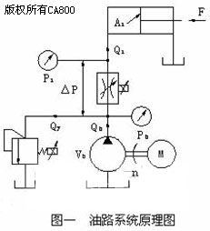 如图一,该系统采用定量泵供油,油泵转速n及油泵排量Vb都不可调,其油路中的各流量及压力分别为: