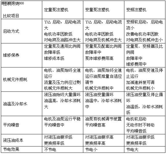由上面的介绍我们可以知道,变量泵注塑机与定量泵注塑机相比,减少了大量的溢流损失,使得油泵电机负载变轻,电流减小,处于轻载状态。变量泵注塑机是从液压元件的角度出发,挖掘油路上的节能改造空间,从而提高了油路系统的工作效率。但受其控制方式限制,该系统不能完全消除节流、溢流损失。