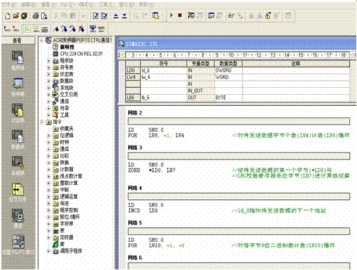 2.CRC校验子程序(SBR0) 伟创AC60变频器内置的MODBUS协议采用RTU传输格式,只是采用了部分MODBUS从协议(只支持03、06、08H这三种命令)通信速率比ASCII模式更快。该格式使用CRC校验方式对每次发出或接收的数据帧进行校验。因此,该子程序使用了多个局部变量,以方便其它子程序调用。