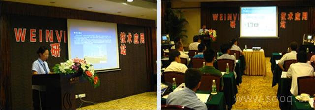 然后,威纶科技华南区商务主管富然女士,就威纶触摸屏近来在重点行业、代表性工程项目中的应用做了简明扼要的介绍;威纶科技华南区大区经理王振营先生,同大家一起分享了威纶科技的成长历程。威纶触摸屏成功应用于京津城际铁路建设、“奥运村三大理念展示中心——微能耗幼儿园”建设、奥林匹克森林公园建设这三大北京奥运建设项目的生动案例,引来与会来宾和经销商代表的阵阵掌声。