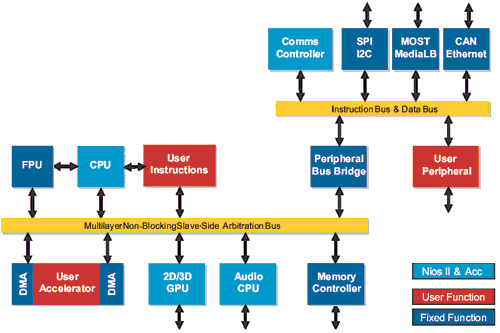 下一代汽车电子系统需要采用非常专业的低成本器件,以满足市场需求。考虑到目前工艺技术开发成本的攀升,对传统微控制器进行专门处理有些不切实际。而针对较大市场范围的多功能器件价格昂贵,也不实用。相反,灵活的微控制器方案针对具体应用开发合适的微控制器,在FPGA中实现原型开发。设计完成后,甚至是在设计过程中就可以立即进行验证、软件开发和现场测试。对于批量生产,FPGA设计直接映射到HardCopy结构化ASIC,而不用重新综合或者再次验证。
