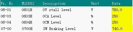 并且使用以上参数作VF控制运行,具体情况如下表,观察后符合电机运行特性。