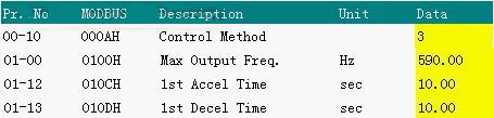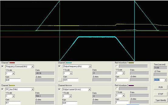 使用面板运行。首先将F=550,运行后发现不论启动过程还是停止过程,当输出频率到达450HZ左右时就不按照加减速时间来变化,变化非常缓慢。当出现以上现象时,可以通过调整参数11-05(M1IdsRef Limit)来解决,将11-05从出厂值90改为110后加减速过程正常。