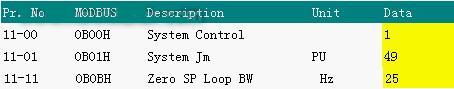 (4)作惯量估测以及ASR自动调整。将参数11-00=2,F=200HZ,01-12=01-13=1,正反转后测得惯量参数为49,之后将11-01=1,观察电机刚性,并对相应参数作修改。
